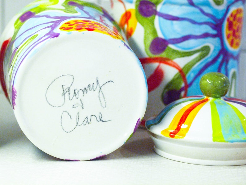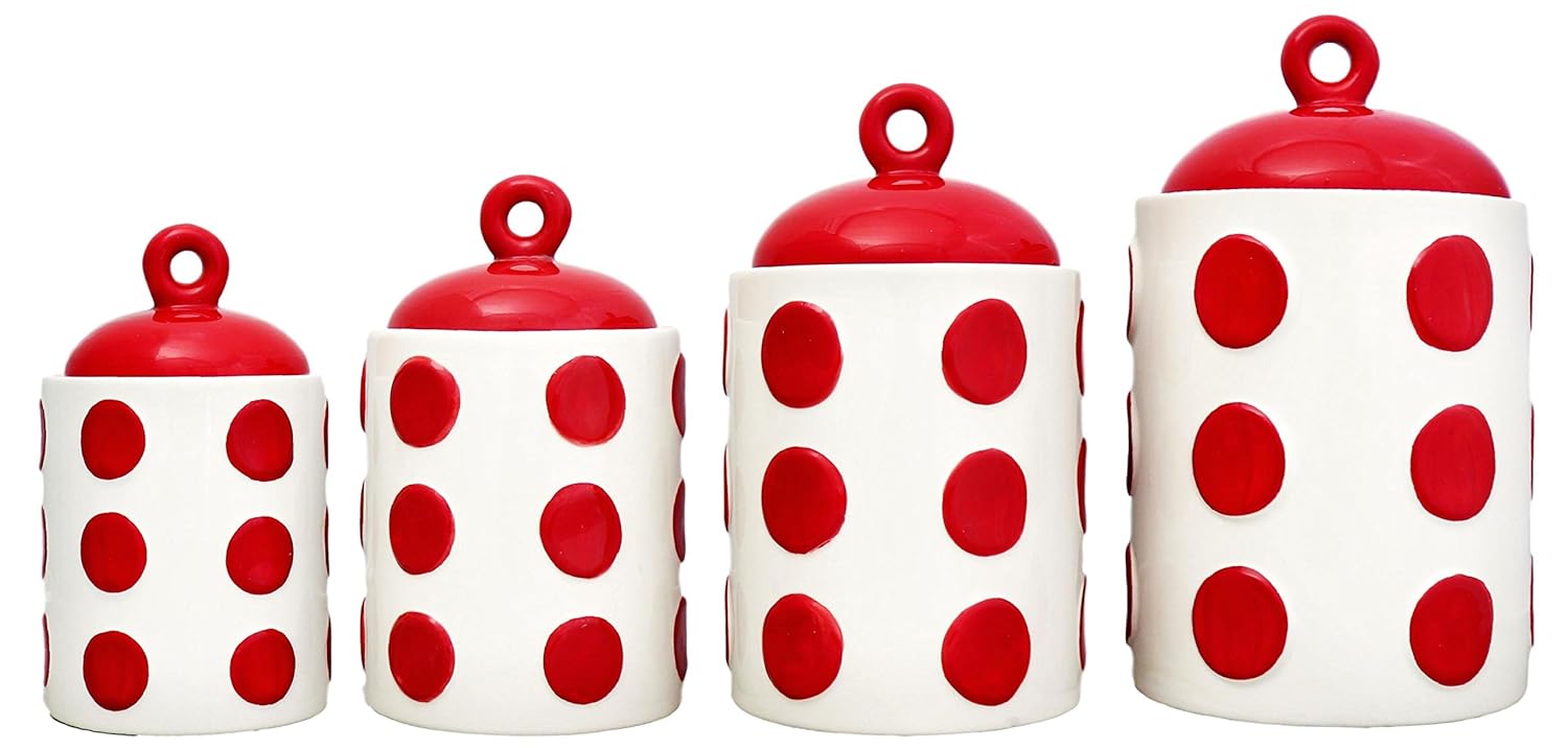 Set of three canisters with colorful hand painted fruit designs made in Italy FromTheSeller (1,787) $88.00 Kitchen Canister Set - Glazed Arctic White 4 Piece Kitchen Canister Set. GeneroseGifts (21) $49.99 Vintage Floral Tin Box / Decorative Tin Canister/ Colorful Vintage Tin with Lid ParisAveVintage (345) $28.00 FREE shipping Kitchen Canisters With Bamboo Lids, Airtight Metal Canister Set, Coffee, Sugar, Tea, Flour Storage Containers, Farmhouse Kitchen Decor, Black, 5.25” X 6.75”, Set Of 3 by 17 Stories From $34.99 $45.99