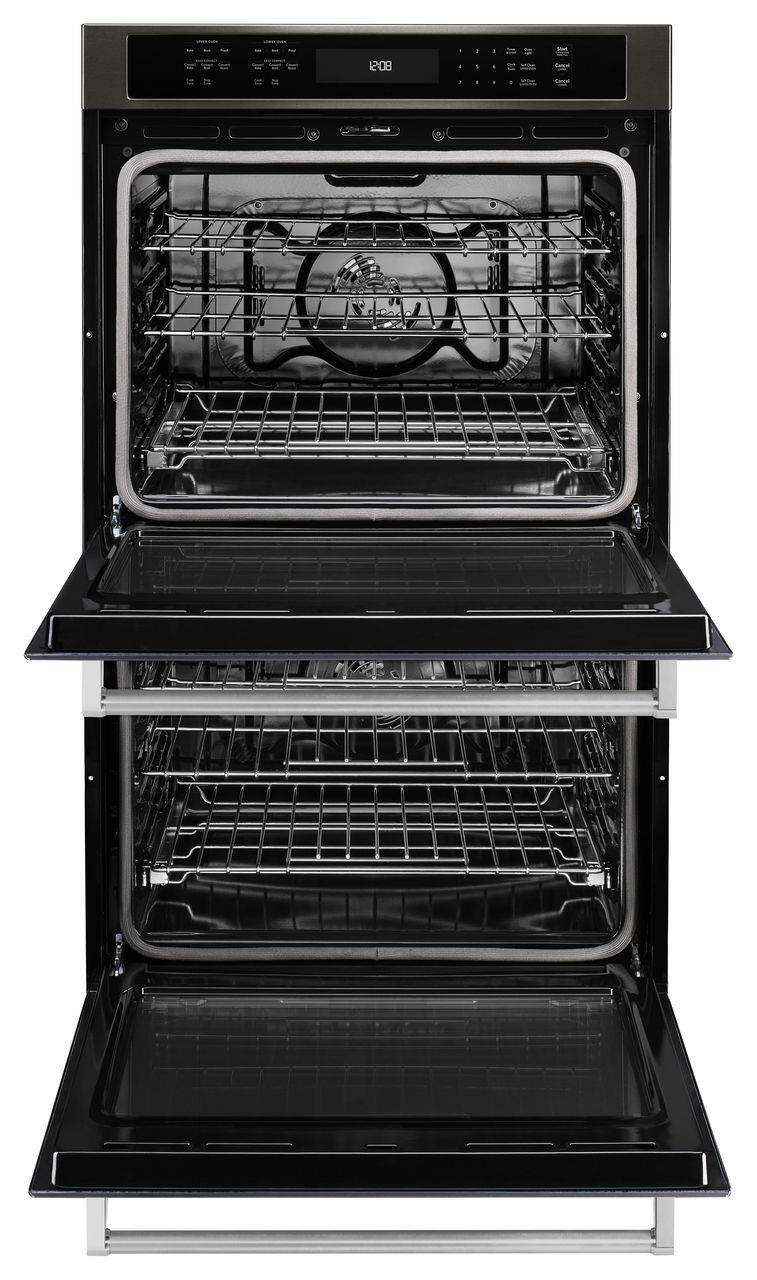 KitchenAid. 30-in Self-Cleaning Convection Double Electric Wall Oven with SatinGlide Roll-out Rack - Stainless Steel. Model # KODE300ESS. Find My Store. for pricing and availability. 200. KitchenAid. 27-in Self-Cleaning Double Electric Wall Oven with EVEN-HEAT True Convection - White. Model # KODE507EWH.