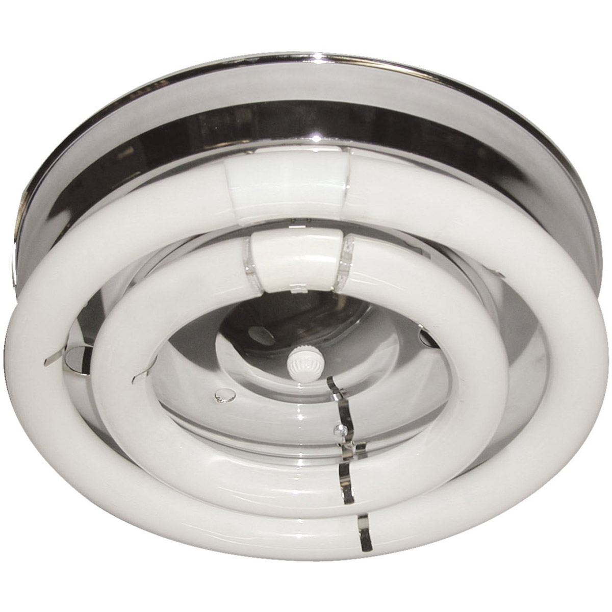 The round shape provides uninterrupted light to any space. This fixture is downlight direction, and takes one 100W E26 bulb, and is compatible with fluorescent, incandescent, and LED bulbs. UL Listed, dry listed, and recommended for an indoor setting only. Can be installed on a sloped ceiling. Number of Lights: 1; Fixture Design: Single 24.13-in Bright Satin Nickel Fluorescent Flush Mount Light. Model # F9870-80. Find My Store. for pricing and availability. 1. 1. Progress Lighting. 14-in White Fluorescent Flush Mount Light. Model # P7383-30.