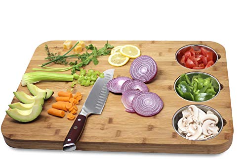 A chef knife is attached so that it can be used in a chopping motion. * Made of polypropylene. * It is removable for cleaning and sharpening. * THe 16" x 12" board is mounted on four suction cup feet. * Three stainless steel spikes for securing foods are conveniently located on the board. * Food guard airds with spreads.* Dishwasher safe. Clever Cutter 2-in-1 Knife & Cutting Board- Quickly Chops Your Favorite Fruits, Vegetables, Meats, Cheeses & More in Second, Replace your Kitchen Knives and Cutting Boards 2,596 $24 99 Get it Wed, Nov 10 - Wed, Nov 17 FREE Shipping More Buying Choices $19.99 (7 new offers) Drop-in cutting boards used to be relatively common in the '60s and '70s, but their popularity waned as people found that they wore out quickly with use. Enter the integrated butcher block, the drop-in's bigger, badder cousin. It, too, can sit flush with the rest of your countertop. But it won't show wear as easily. SILENCIO Natural Bamboo Wood Chopping Cutting Board With Knife Set for Kitchen Vegetables, Fruits & Cheese, BPA Free, Eco-Friendly, Anti-Microbial Chopping Board for Kitchen (Chopping Board With Knife Set) 4.0 out of 5 stars 85
