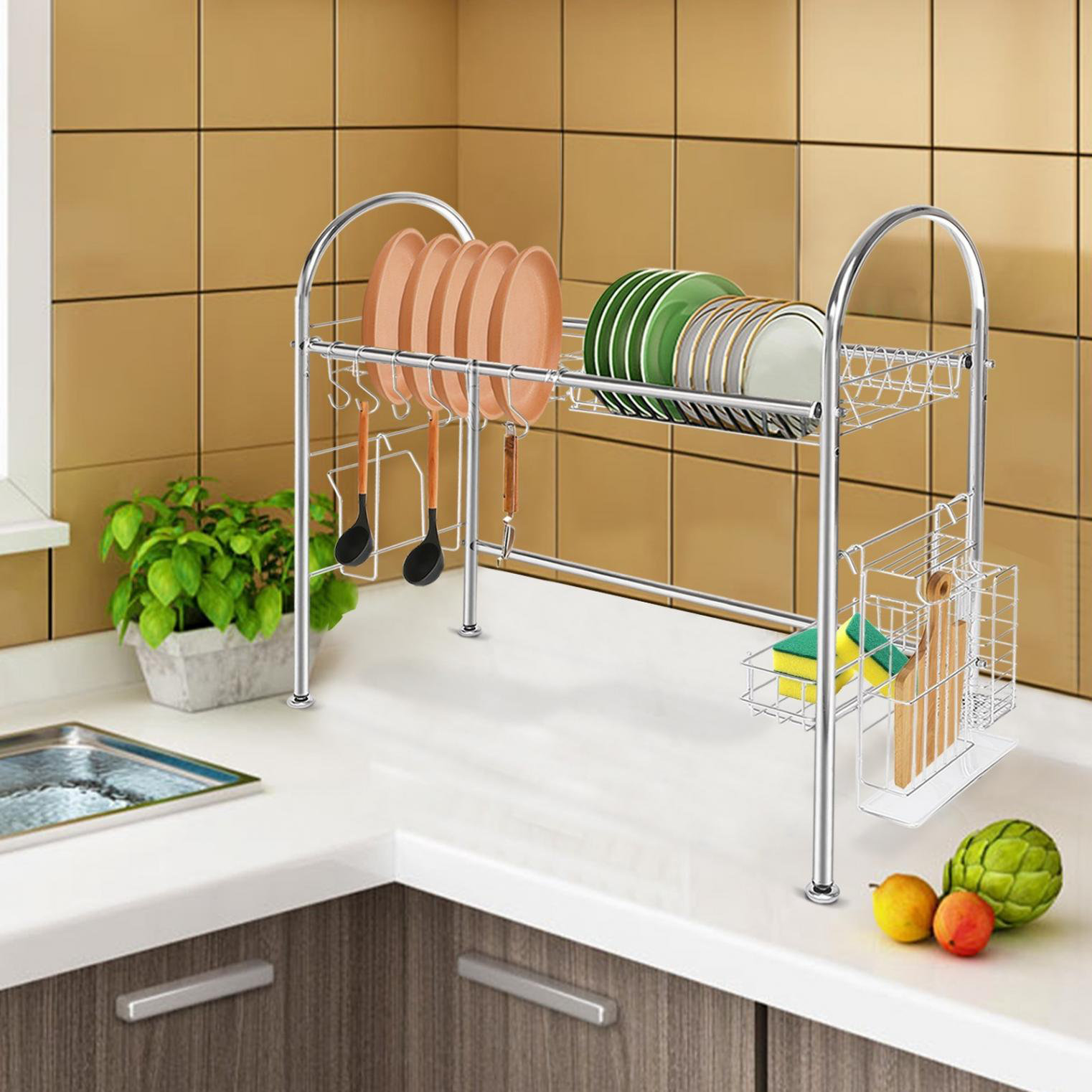 jing_long2011 Dish Drying Rack 304 Stainless Steel ... 2-Tier Large Capacity Dishrack: This dish racks has a large capacity and can hold all kinds of kitchen utensils; the top shelf has 11 widening and deepening grooves, which can hold 9 different sizes of plates or small lids. The internal stainless steel deepening grooves can hold all kinds of bowls, cookware, and cups; there are 3 cutlery racks on both sides, which can place cutlery, fork ...