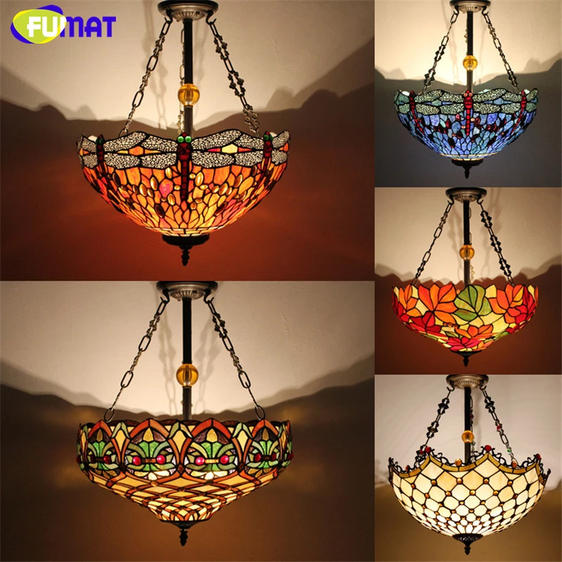 FUMAT Chandelier Tiffany-Style Pendant Light Stained Glass Luster Shade LED Ceiling Lights Chandelier Kitchen Living Room Lamp