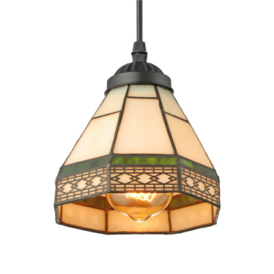 Cone Shade Tiffany Pendant Light in Stained Glass 7" Wide Decorative Mini Hanging Pendant for Kitchen Restaurant