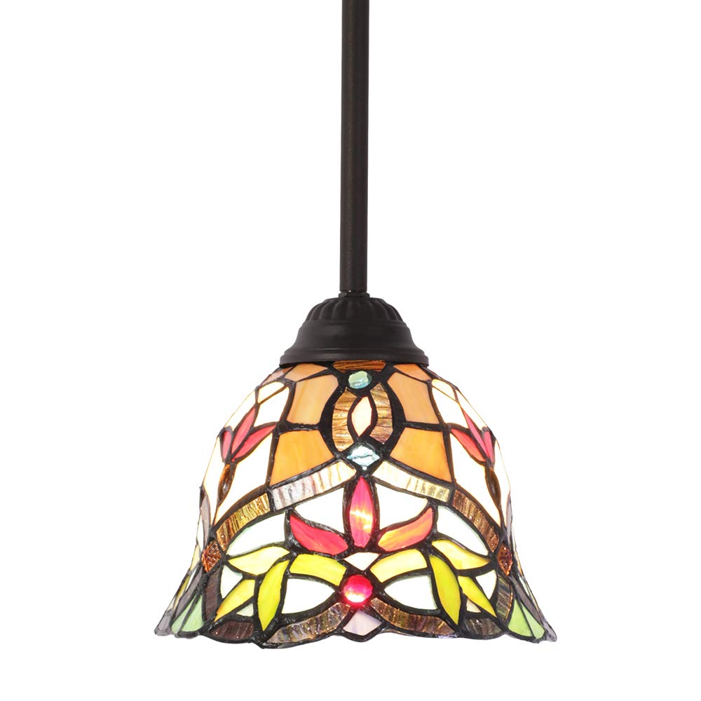 Cotoss Tiffany Mini Pendant Light Fixtures Hanging Lamp 1 Light Mission Style Stained Glass Lamp Shade Hanging Lights for Kitchen Island Covered Porch