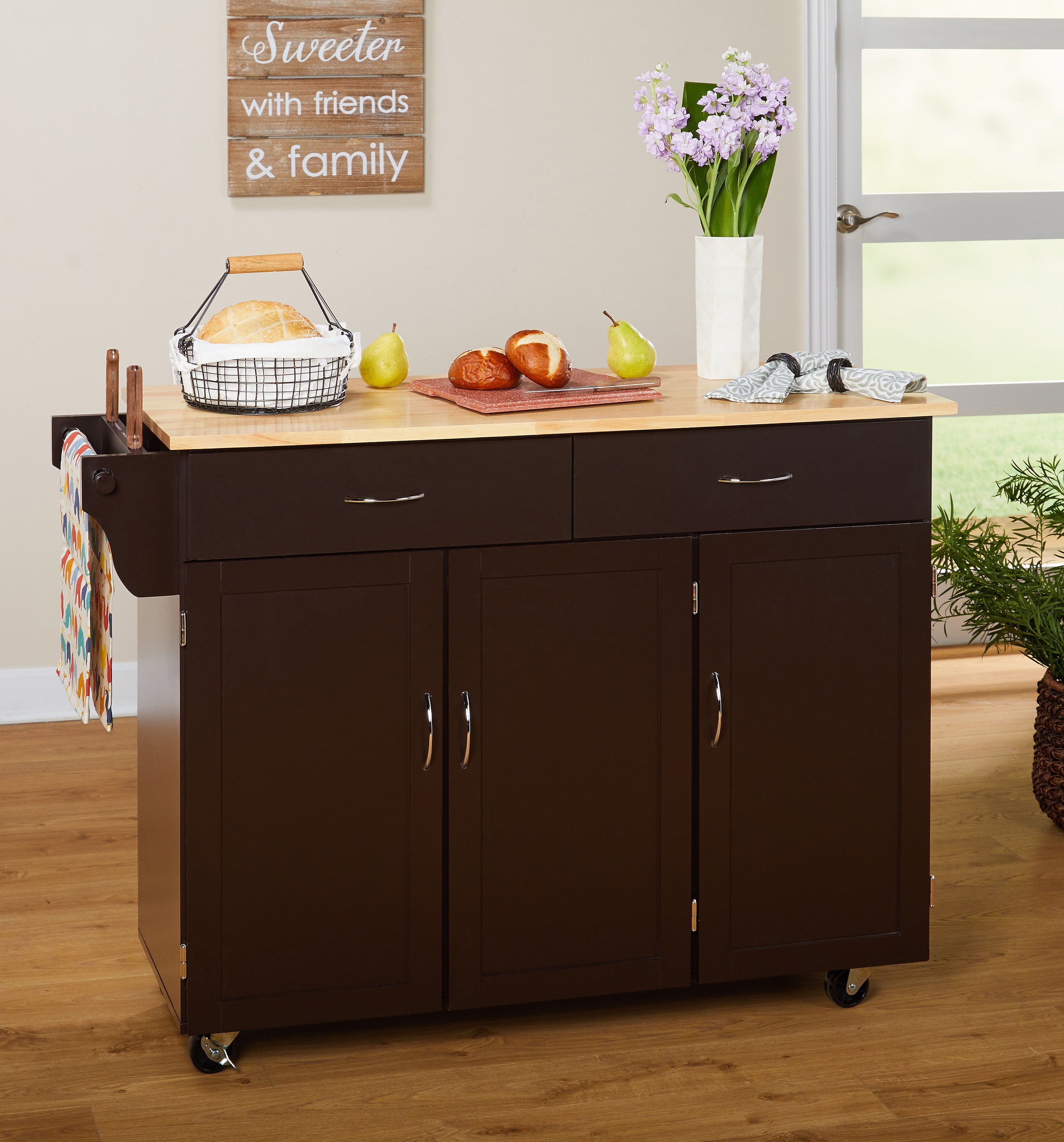Cheap Serving Storage Carts: Extra Large Kitchen Cart with ... Extra Large Kitchen Cart with Wood Top in Espresso Review. 60048ESP Add extra space and storage to any kitchen with this extra large kitchen cart. Two utility drawer, Three storage cabinet with adjustable shelf, and towel holder and knife block on one side. Available with wood top in a black, white, or espresso finish.
