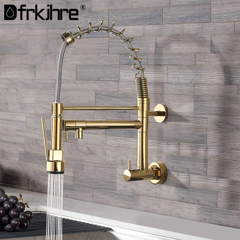Nickel Black Gold Chrome Wall Mount Spring Kitchen Faucet 360 Rotation Pull Down Hand Sprayer Brass Mixer Taps Cold Hot Water