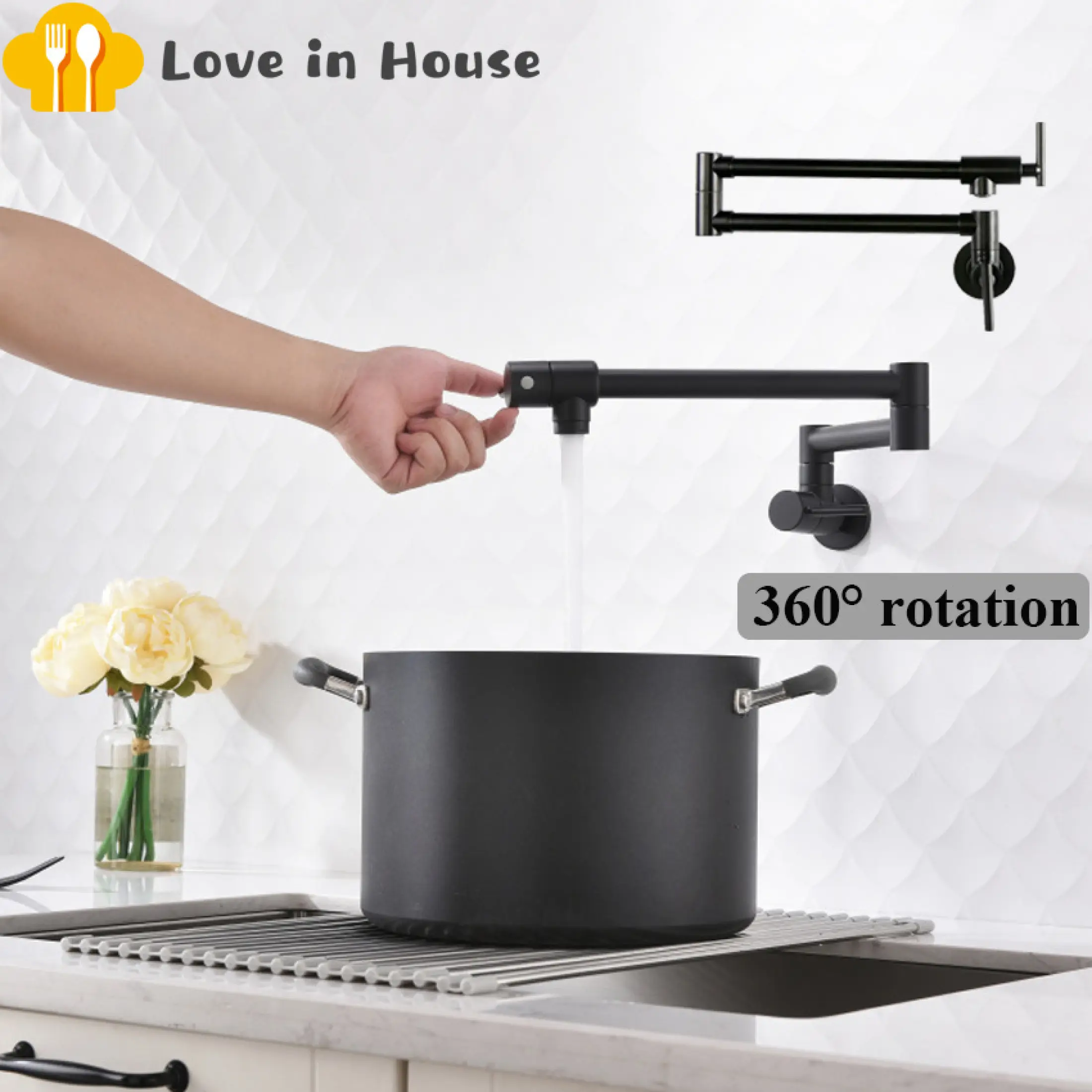 Wall Mounted Brass single cold Pot Filler faucet tap Double Joint Spout Brushed nickel Deck Mounted Kitchen Faucet