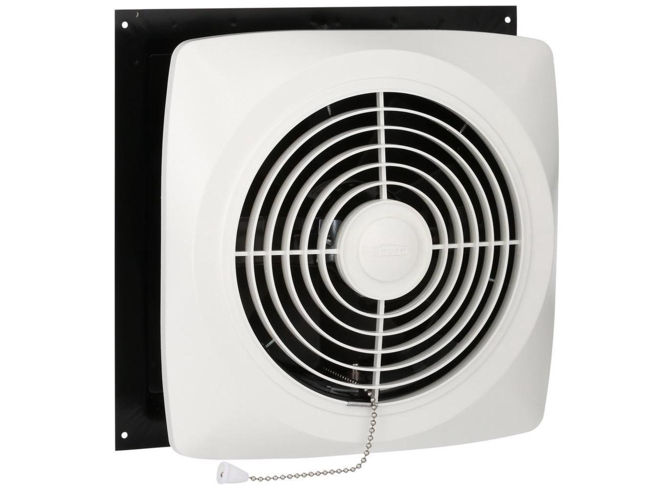 BROAN Exhaust Fan, Kitchen, Wall, Chain Operated, Steel ... This exterior wall-mounted fan is pull-chain operated and features a polymeric fan blade and a foam-insulated door for energy efficiency. Use it to eliminate humidity from laundry rooms, tobacco smoke from rec rooms, fumes from workshops, or cooking fumes from kitchens. The housing adjusts to fit walls from 4-1/2" to 9-1/2" thick.