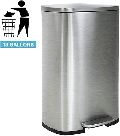 Amazon.com: Stainless Steel Trash Can Step 13 Gallon Metal Trash Can with Lid Large Garbage Cans ...