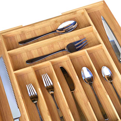 Bamboo Kitchen Drawer Organizer - Expandable Silverware Organizer/Utensil Holder and Cutlery ...