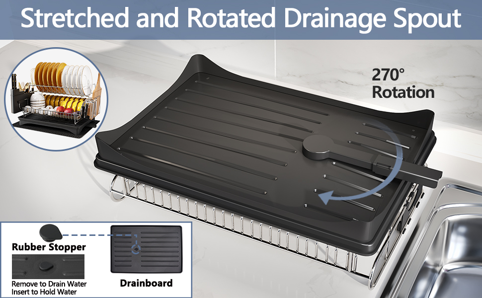 Dish Rack With Drain Board | Wayfair Dish Rack and Drainboard Set, Extend Large Dish Drying Rack with Swivel Spout for Kitchen Counter or Sink, Expandable Dish Drainer Rack with Utensil Holder and Cup Holder. 360° Adjustable Swivel Spout: The self draining drainboard features an extendable 360° swivel spout for draining water into the sink from any sides.