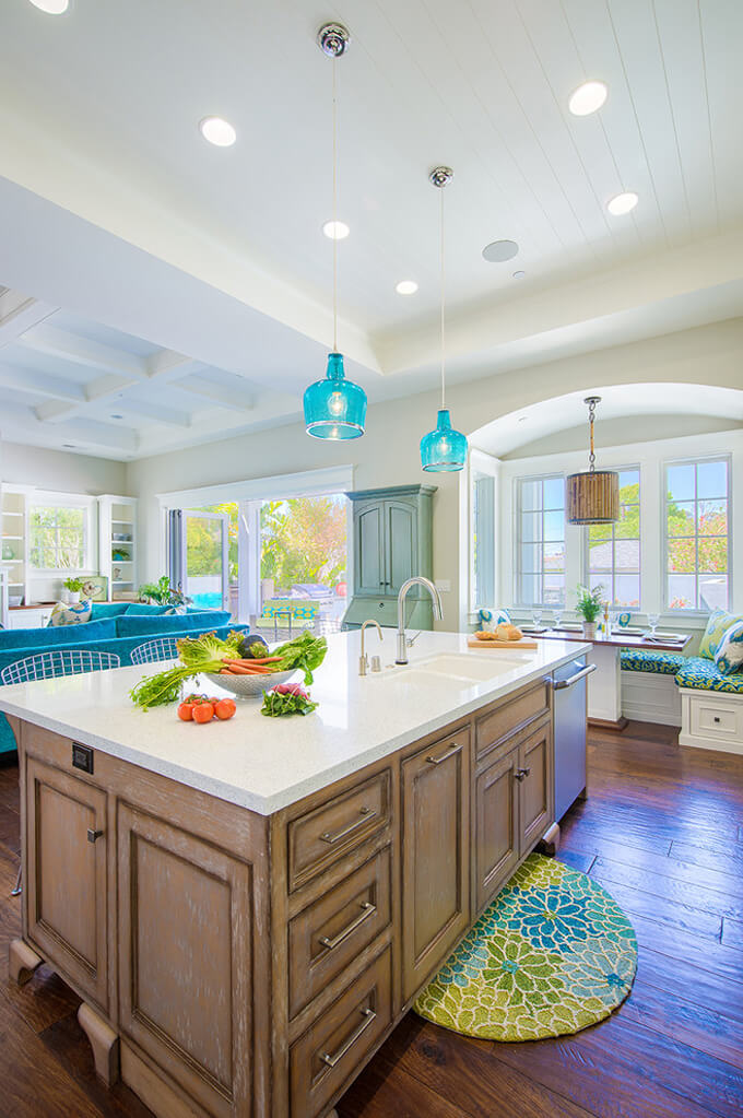 15 Pendant Lights to Showcase Your Kitchen Island | Houzz AU To make pendant lights jump out and create a loud statement, choose colours and materials that contrast with the kitchen units. If you have wooden units, high-shine black or chrome pendants will stand out, or if your units are glossy white you could try brightly coloured glass pendants for a bold, confident look. CplusC Architectural Workshop