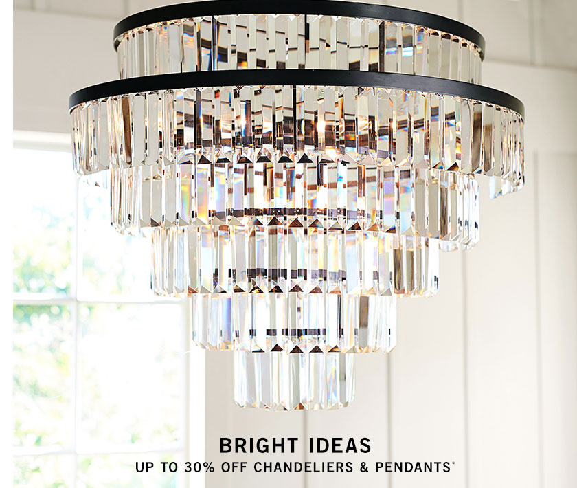 Chandeliers & Luxury Lighting - Pottery Barn Bring light to your space with beautifully crafted chandeliers from Pottery Barn Canada. Find modern and contemporary chandeliers in an array of finishes, sizes and styles. Javascript is disabled on your browser. To view this site, you must enable JavaScript or upgrade to a JavaScript-capable browser. UP TO 40% OFF IN-STOCK & READY TO SHIP