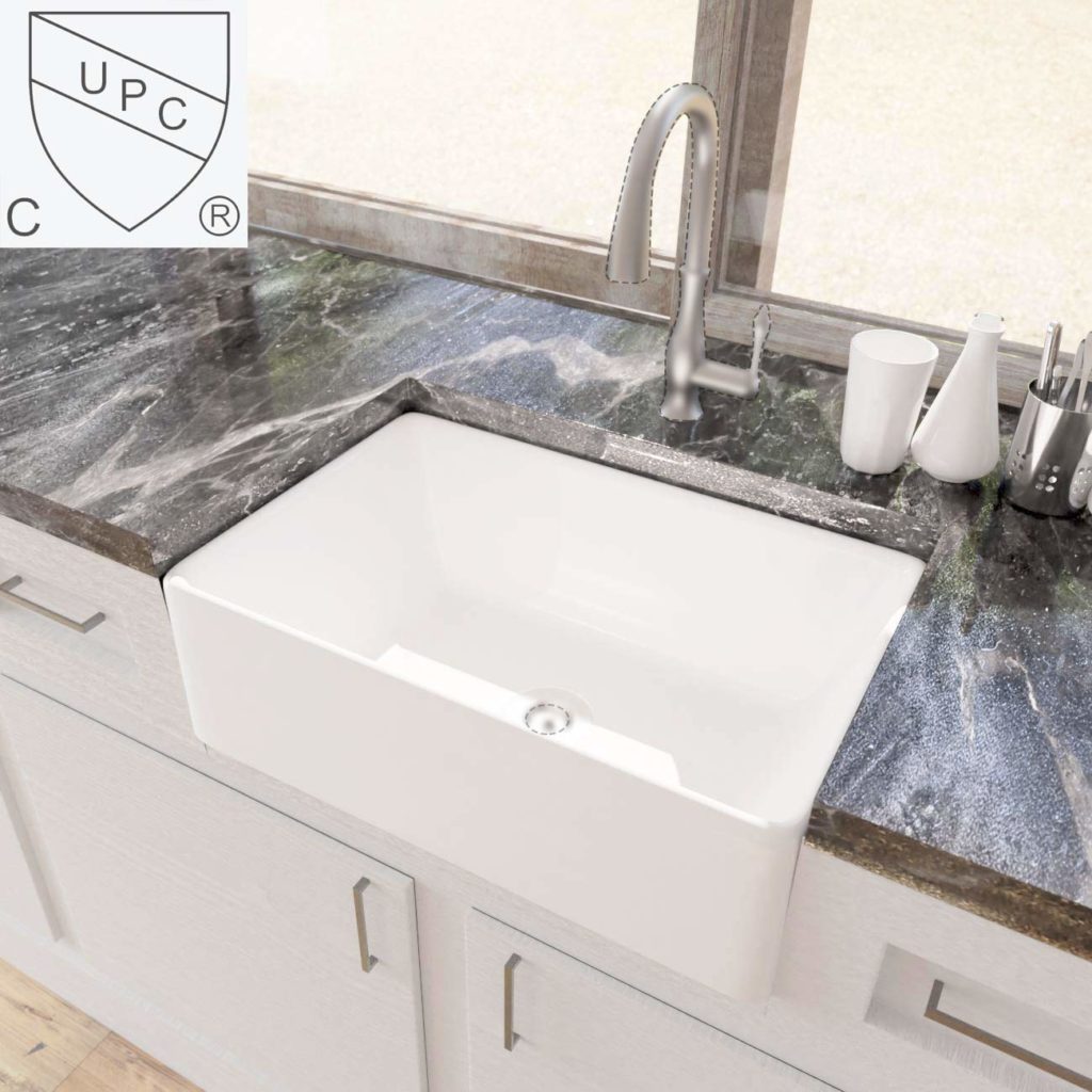 Whitehaus Collection WHPLCON2719-WHITE Reversible Series 27 inch ... This item: Whitehaus Collection WHPLCON2719-WHITE Reversible Series 27 inch Farmhaus Fireclay Sink with a Plain Front Apron, White $968.77 OWOFAN Kitchen Faucets Commercial Solid Brass Single Handle Single Lever Pull Down Sprayer Spring Kitchen Sink Faucet Matte Black Grifos De Cocina 9009R $59.49