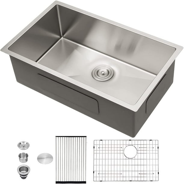 Gaomasck Kitchen Sink , 30 x 16.5 inch Undermount Kitchen Sink Single Bowl 16 Gauge Stainless Steel Sink, High-end Handmade for Kitchen Sink, Bar Sink ...