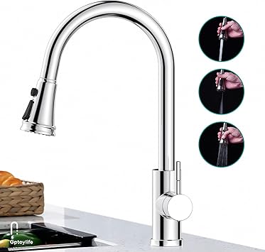 Gptoylife Kitchen Faucet with Pull Down Sprayer-3 Functions Sprayer Commercial Kitchen Sink Faucets | Stainless Steel Single Handle Pull Out Kitchen ...
