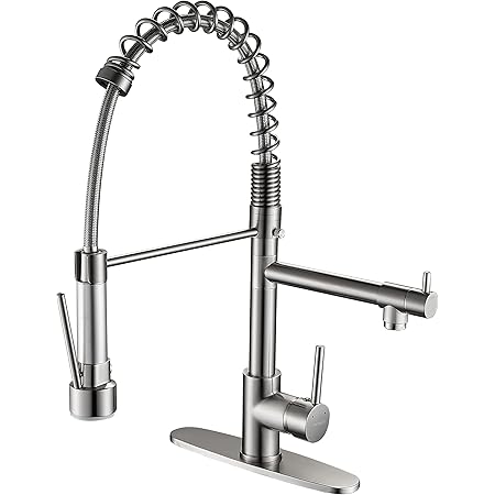 › home-improvement › pdpPull Down Single Handle Kitchen Faucet with Accessories A commercial pull-down design with a high-arc open coil spout suit for most kitchen cabinets. FORIOUS Pull-down kitchen faucet has 360 Degree Swivel Sprayer and offers the advantage of a compact 20” height that gives a wider water area and flexibility. The dual-function spray head switches between an aerated stream for filling pots and pitchers, and a powerful spray to rinse dishes and wash ...