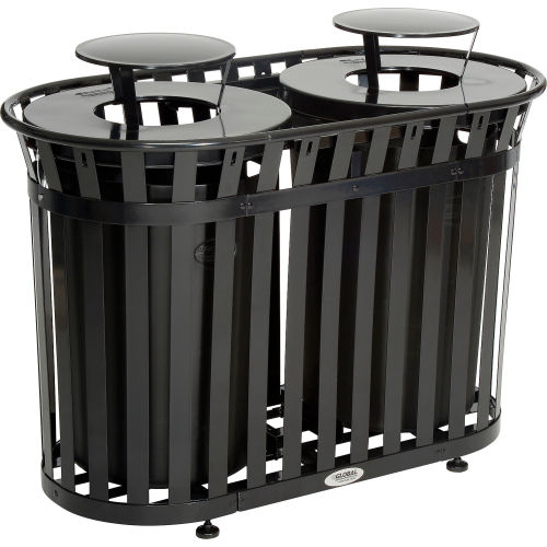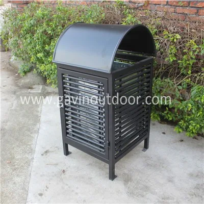 Metal Outdoor Trash Cans | Park Garbage Cans | Steel Recycling Bins View Product. 38 Gallon Outdoor Metal Waste Receptacle - Black. Your Price: $785.00. View Product. 38 Gallon Outdoor Metal Slatted Trash Receptacle With Rain Bonnet Lid - Black. Your Price: $911.00. View Product. Oakley Customizable 24-Gallon Slatted Waste Receptacle. Your Price: $1,033.00.