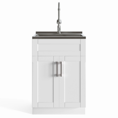 VINGLI 24-Inch Laundry Sink with Cabinet, Stainless Steel Sink with Pull- Out Sprayer Faucet White Cabinet Combo for Laundry Room, Utility Room, ...