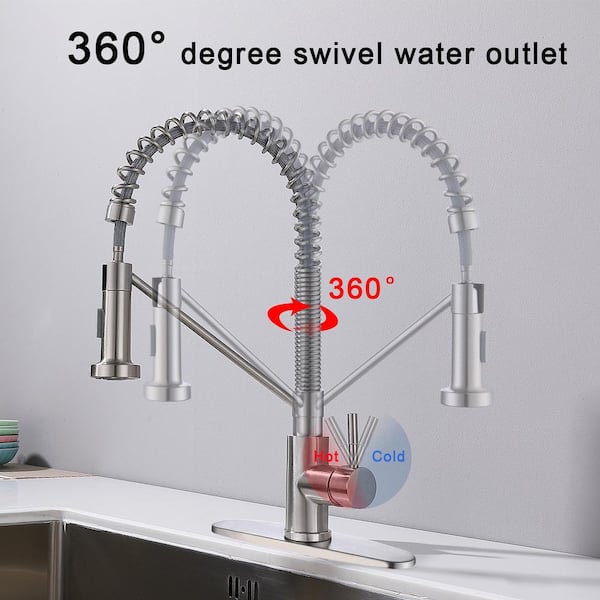 Kitchen Faucet Lead Free High Arc Spring Kitchen Sink Faucet with Pull Down Sprayer, Single Handle Single Lever Pull Out Kitchen Faucet,Brush Nickel