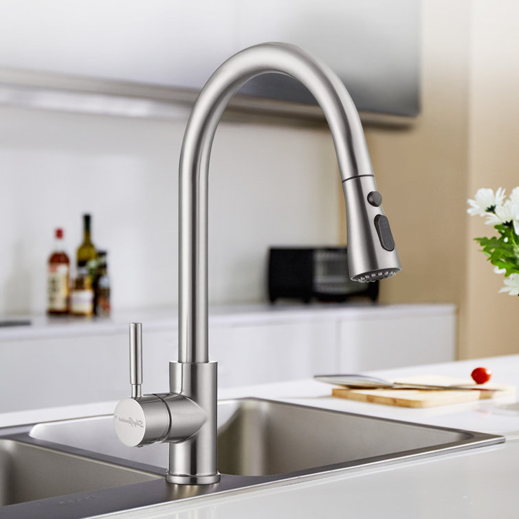 Lkjpo Kitchen Faucet with Pull Down Sprayer Modern 2 Handle Faucets ... *Brass kitchen faucet, lead-free, environmentally friendly, healthy, rust-free, scratch-free, non-corrosive, and very durable *360°rotation, you can move freely in the kitchen to the greatest extent. It can meet your needs for all-round and multi-angle cleaning, and clean every corner of the sink