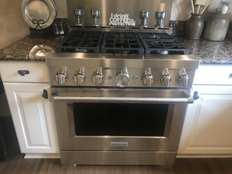KitchenAid 36-in Gas Ranges at Lowes.com Range Size (Inches) 30 (2) 36 (3) Show Item Number Popular Widths: 36-in Brand: KitchenAid Show 5 Results Popular Widths: 36-in Brand: KitchenAid KitchenAid SMART Capable 36-in 6 Burners 5.1-cu ft Self-cleaning Convection Oven Freestanding Gas Range (Avocado Cream) Model # KFGC506JAV Find My Store for pricing and availability 69 Type: Freestanding