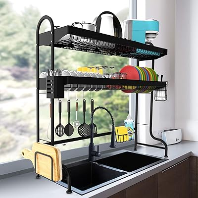 Amazon.com: over the kitchen sink shelf Over Sink Dish Drying Rack, MAJALIS 3 Tier Full 304 Stainless Steel Large Dish Drainer for Kitchen, Height Adjustable Above Sink Shelf, Counter Storage Organizer with 10 Hooks (Sliver, 25.5"-35.5") 4.6 (1,602) $12799 Save $10.00 with coupon This unit boasts a convenient design to free up valuable counter space. MORE RESULTS