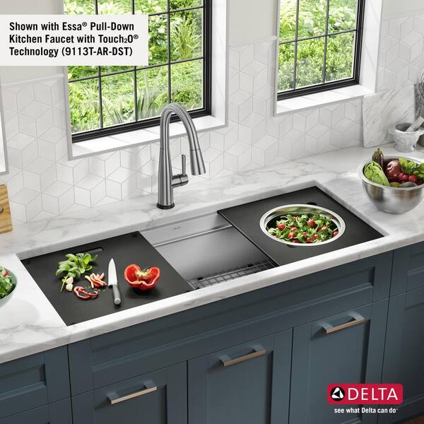 32 in. Single Bowl Undermount 16-Gauge Stainless Steel Ledge ... Lorelai 16-Gauge Stainless Steel 30 in. Single Bowl Undermount Workstation Kitchen Sink with Accessories The Delta Lorelai Workstation Collection The Delta Lorelai Workstation Collection is defined by sleek lines and gently rounded corners, offering a clean transitional look that blends perfectly with any kitchen style.